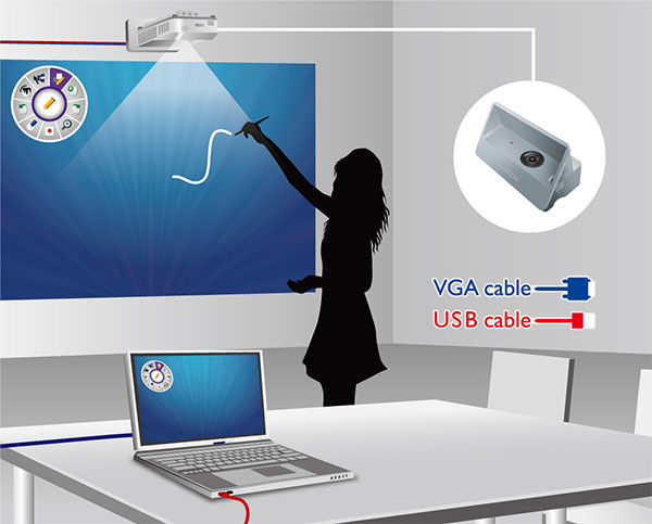 Sada PW40U PointWrite™ funguje na jakémkoli rovném povrchu, takže není třeba drahá digitální tabule ani další vybavení. Pomocí PW40U lze promítat obraz na stůl nebo lavici a umožnit tak více studentům snadno sdílet a psát na stejné obrazovce, což vytváří rozsáhlé nové možnosti interaktivity ve třídě a umožňuje využití možností moderních digitálních učeben.