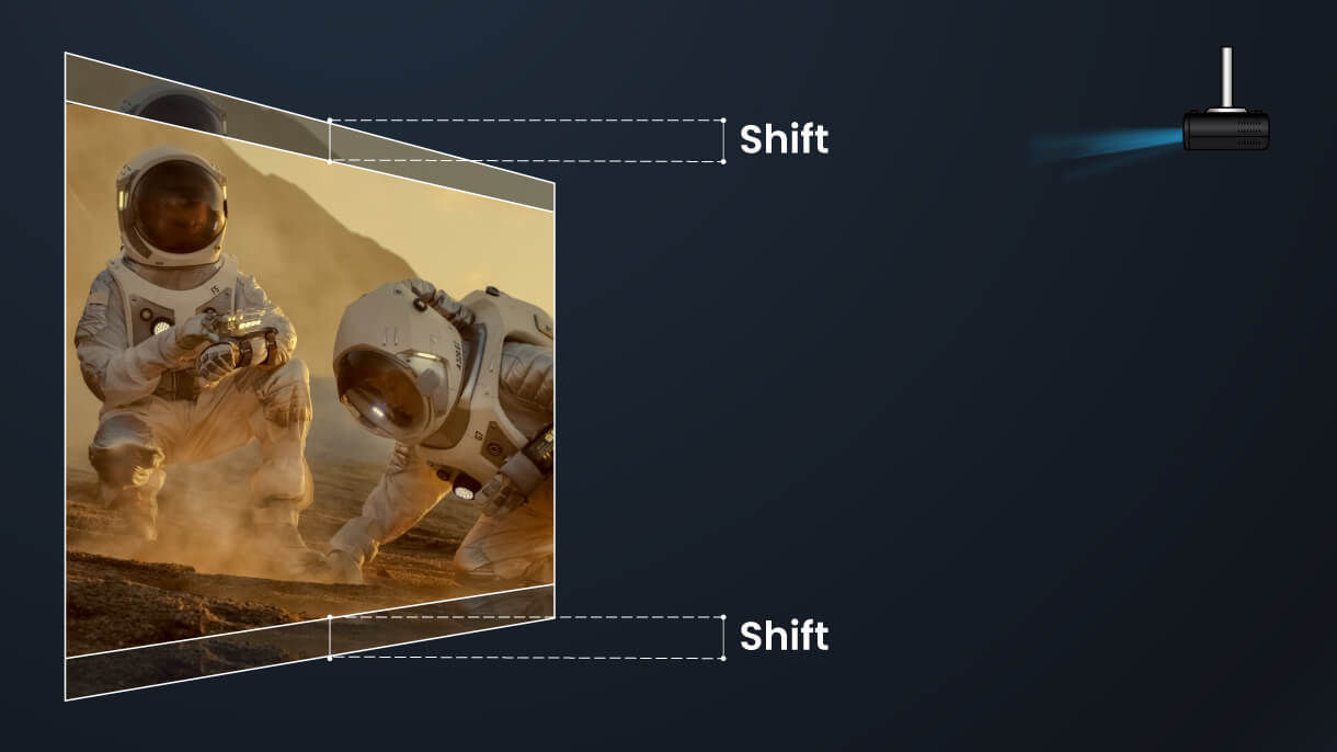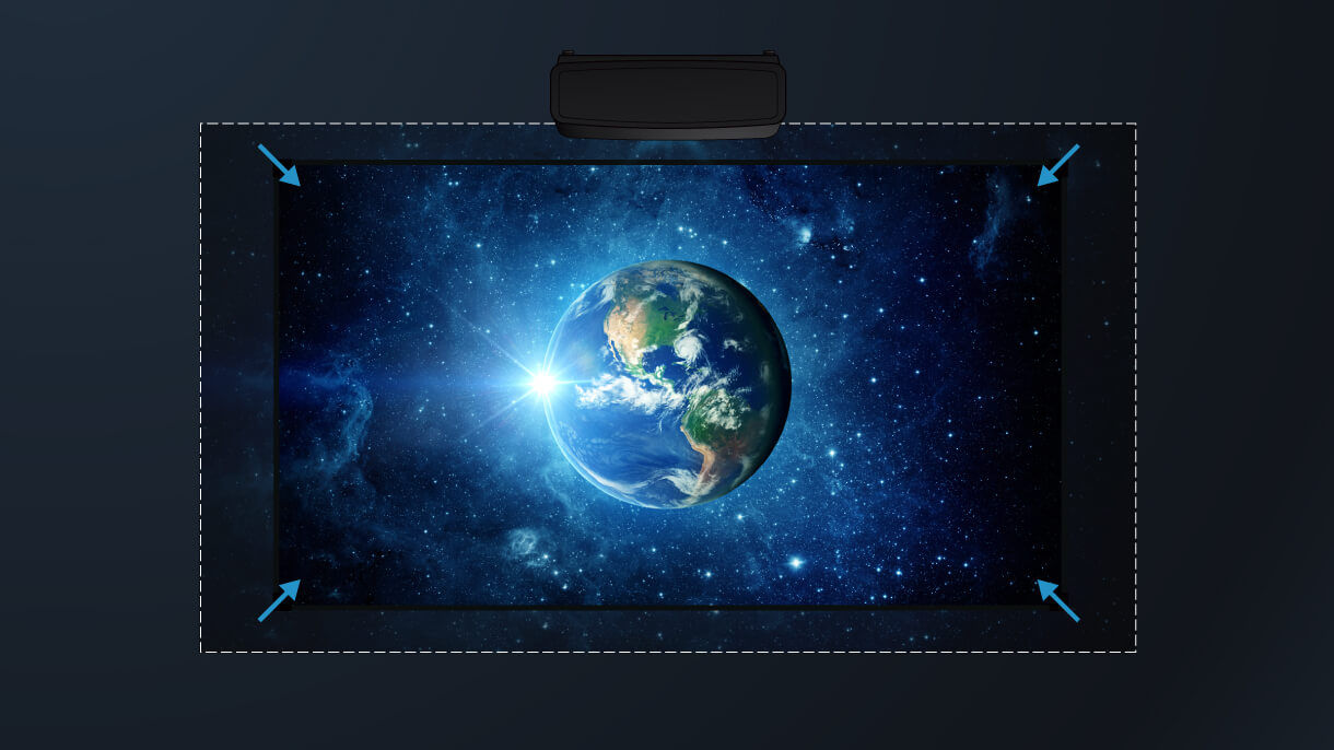 Die seitlichen Installationsknöpfe erleichtern die Anpassung des Bildschirms, selbst wenn der Projektor an der Decke montiert ist.