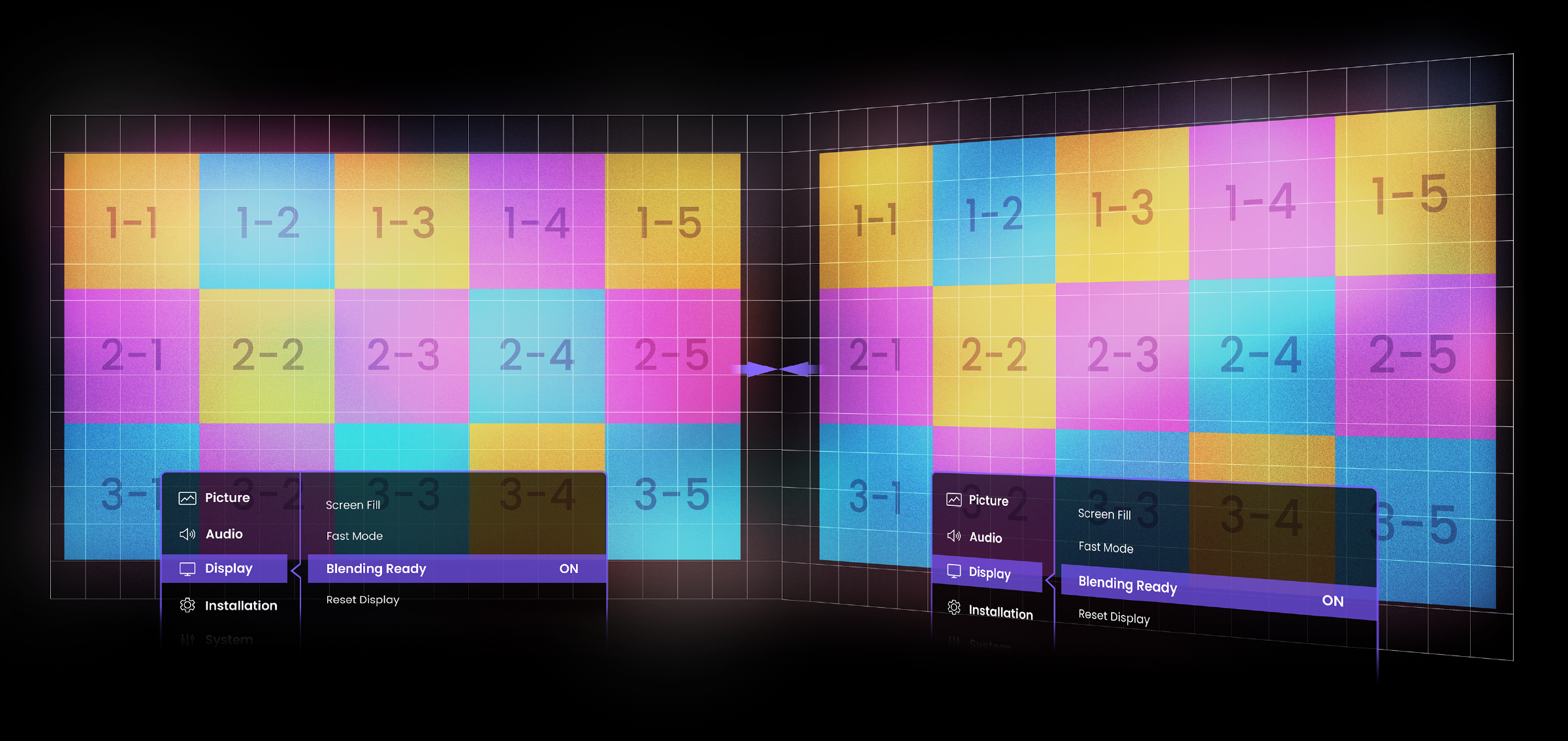 *Vorkonfigurierte Einstellungen. Automatische Edge-Blending-Software ist nicht enthalten. Für die vollständige Ausführung des Edge-Blendings wird zusätzliche Software oder Hardware benötigt.