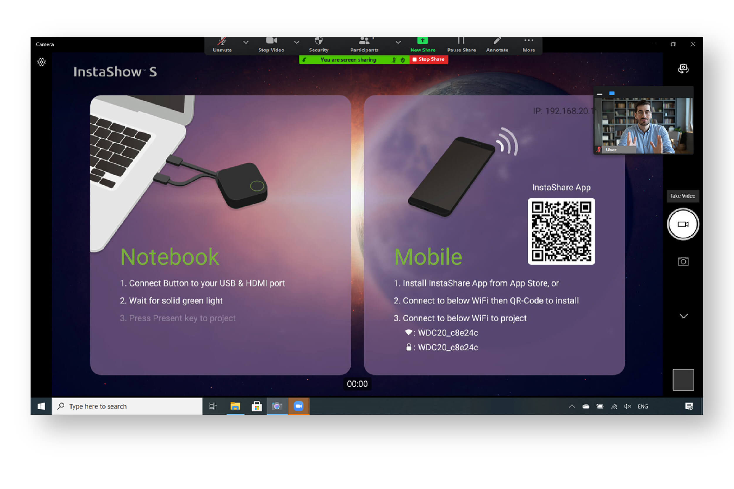 Über ein paar einfache Schritte kann InstaShow® vollständig in die gängigsten Videokonferenz-Apps (z. B. Zoom) integriert werden. So können mehrere Teilnehmer in einem gemeinsam genutzten Konferenzraum, Inhalte von ihren PCs über einen InstaShow Button an entfernte Teilnehmer zu übertragen, während nur eine einzige Internetverbindung für den gesamten Raum genutzt wird. Auf diese Weise kann die Videokonferenz reibungslos fortgesetzt werden, während die übrigen Internetverbindungen Ihres Unternehmens nicht beeinträchtigt werden. Folgen Sie dazu einfach den Anweisungen in diesem Artikel: