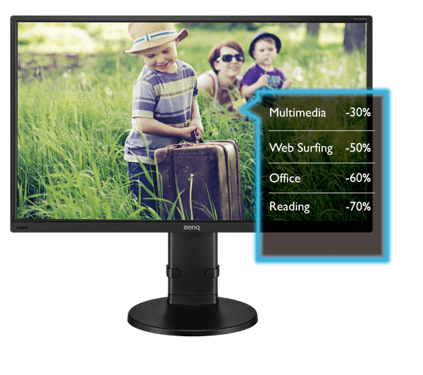 BenQs einzigartige Technologie Low Blue Light filtert schädliches blaues Licht und reduziert so die Ermüdung und Irritation der Augen.