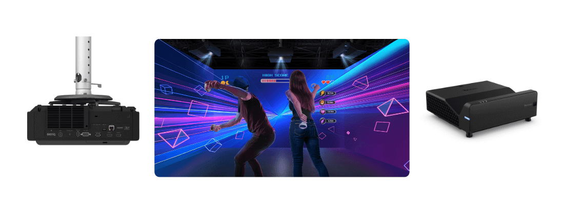 Immersives Gaming mit dem BenQ LU895UST: Der 5.000-Lumen-Ultra-Kurzdistanzprojektor bringt Action auf die große Fläche.