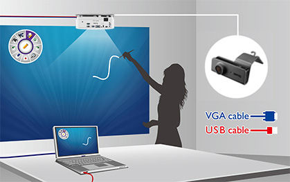 With enhanced multi-touch capability for pens or fingers, two PointWrite™ projectors can be used in conjunction to double the interactive projection surface, creating vast new opportunities for interactive learning in modern digital classrooms. In QWrite Whiteboard Mode, teachers can also run different applications or display, view, and annotate across two surfaces.