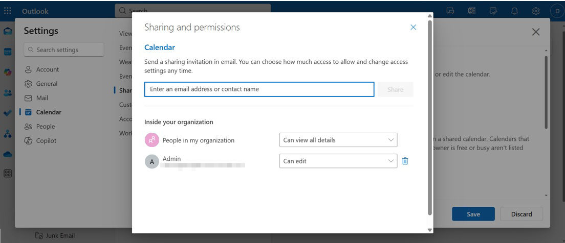 3. Ensure that the calendar is shared properly.