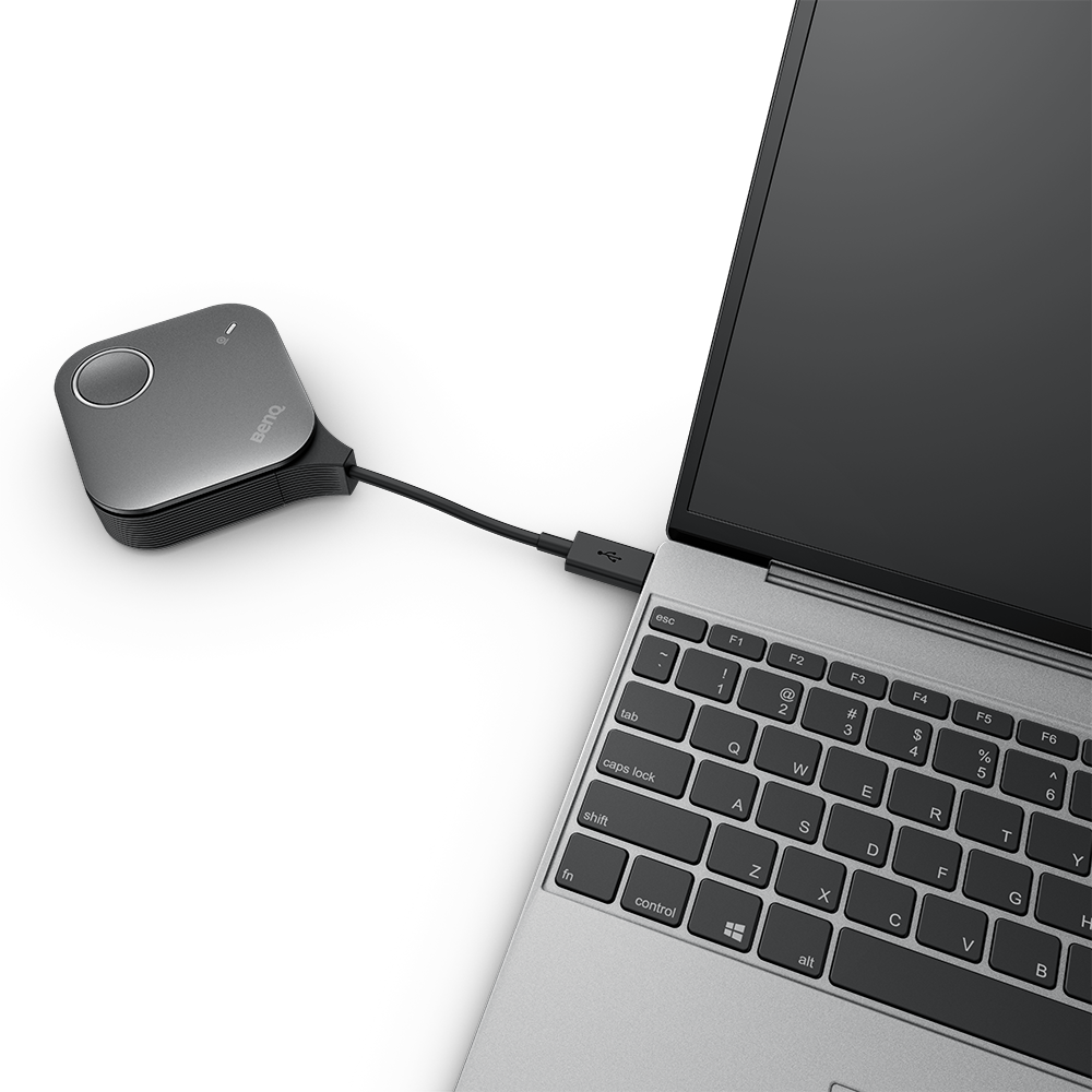 2. Plug Host Button into presenter’s laptop, tap the green button and share the content.