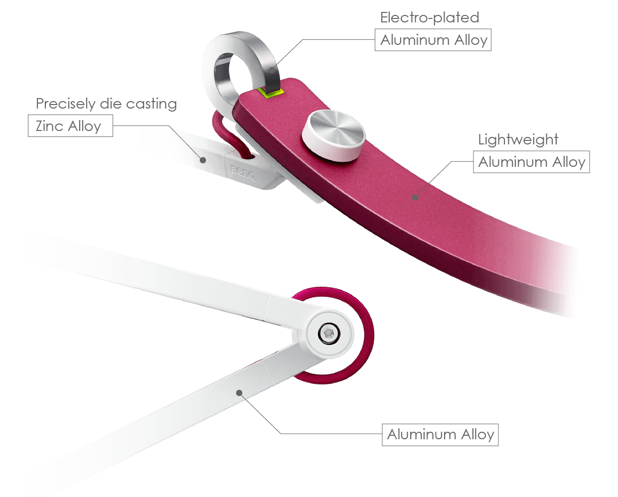 The light cap utilizes the lightweight aluminum alloy to dissipate the heat generated by the LED, thereby extending the lifespan of the LED over typical plastic caps. For torque springs, zinc alloy is used to enhance the stability and durability. All WiT materials meet the restrictions in the EU Directive, RoHS (2002/95/EC).