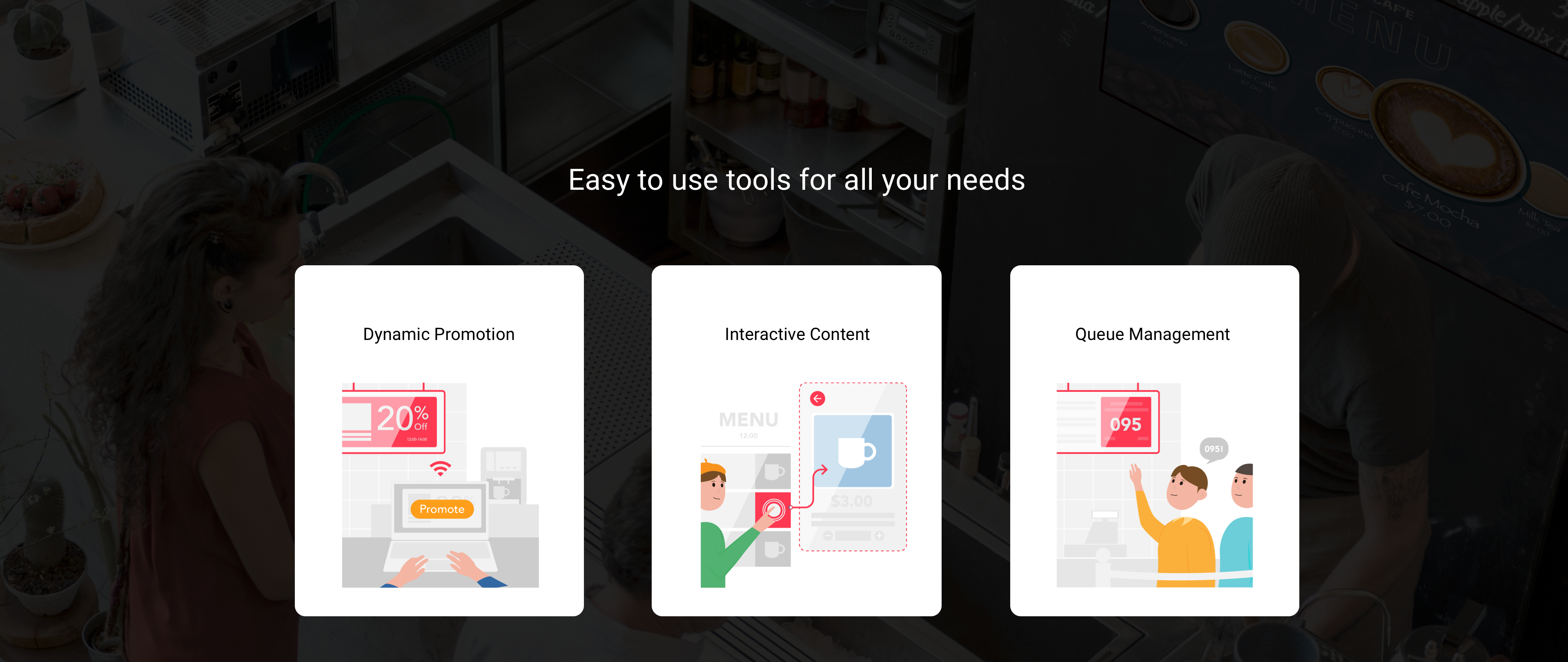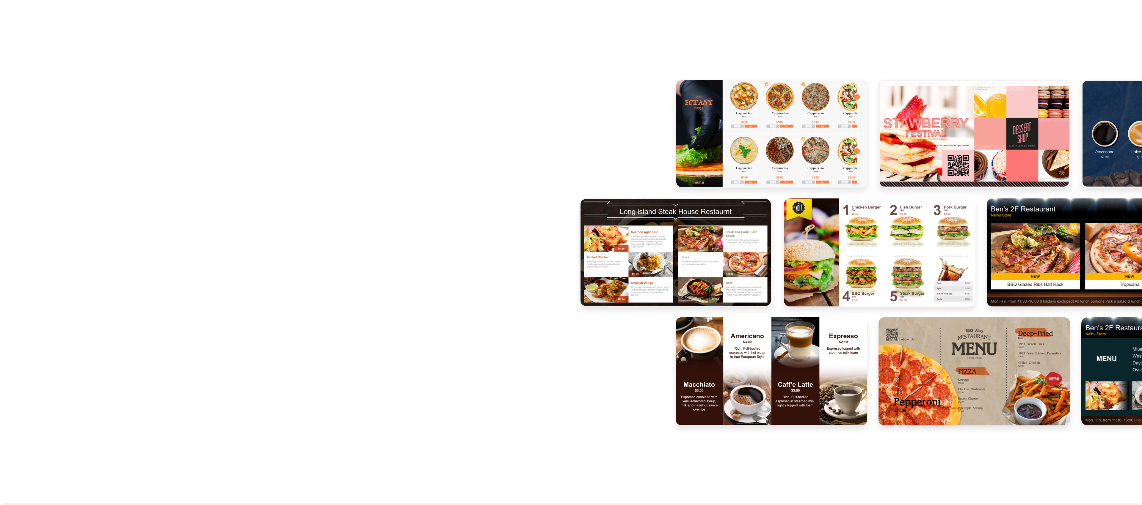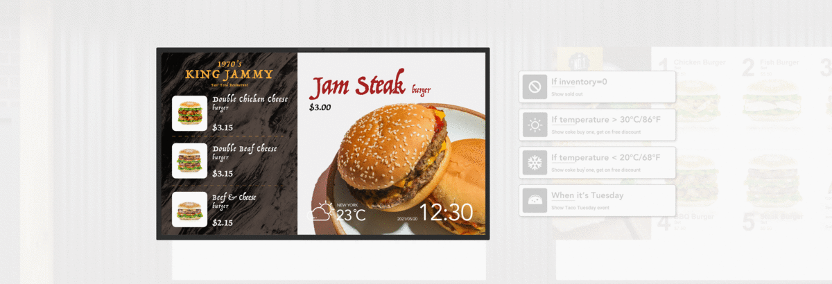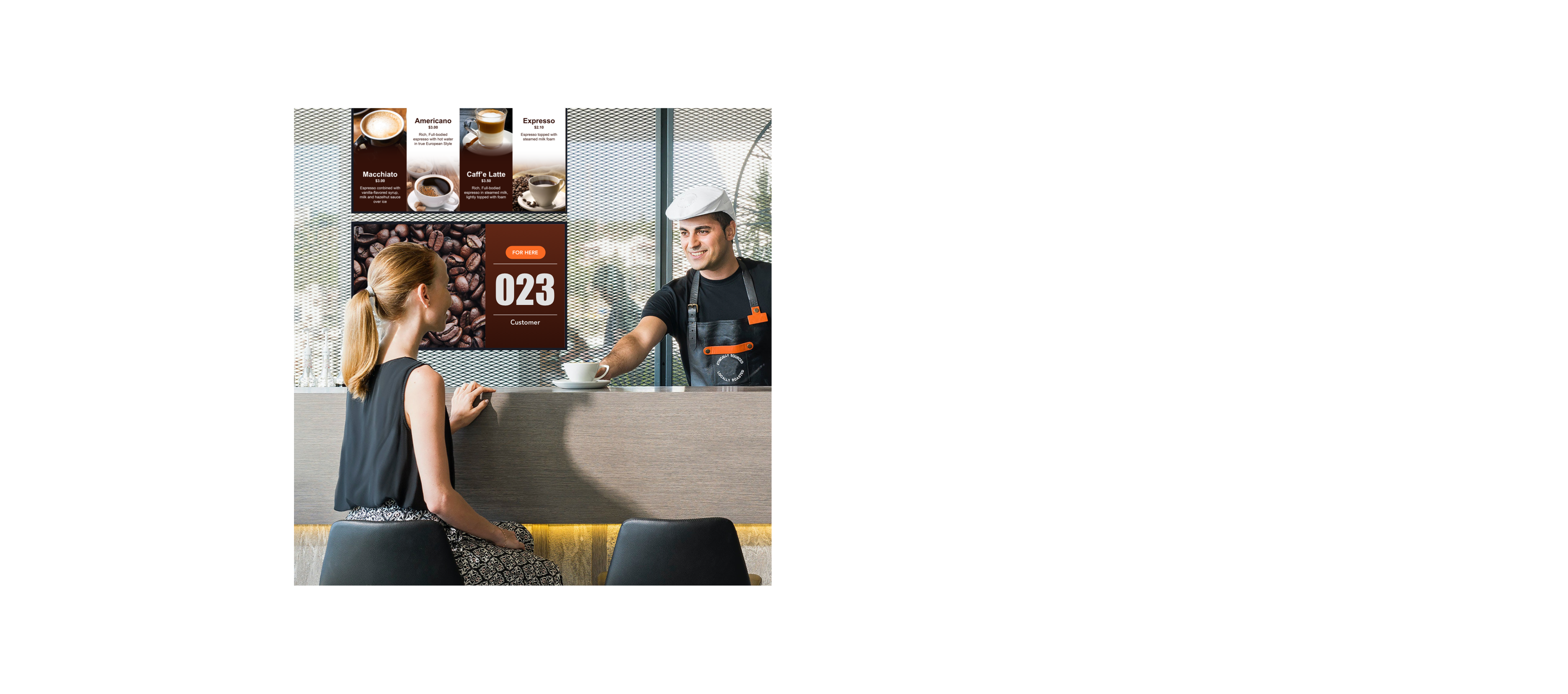 Attract customers and enhance brand identity with vibrant real-time content that can be easily customised to fit your restaurant or coffee shop.