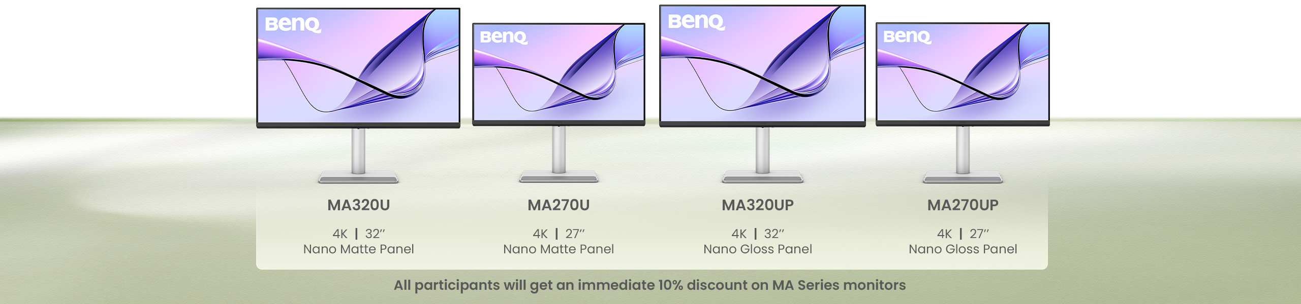 21. The use of the coupon may be subject to the terms and conditions of the BenQ online store. The coupon applies exclusively to models MA270U, MA320U, MA270UP, MA320UP, and MA270S. The coupon cannot be combined with other promotions or used on external platforms. Each order is limited to a maximum of 4 monitors, and the code is valid for one-time use only.