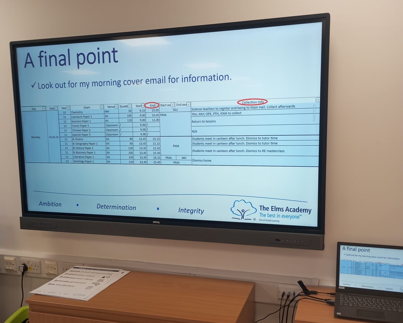 The Elms Academy was struggling with outdated projectors that suffered from image quality issues and lack of brightness. Each classroom had an existing interactive board, but these were all many years old and were not only failing to connect to the computers but had lost much of their interactive touch points resulting in a poor learning experience for students and frustration from teachers.