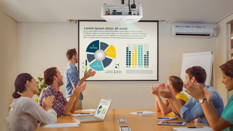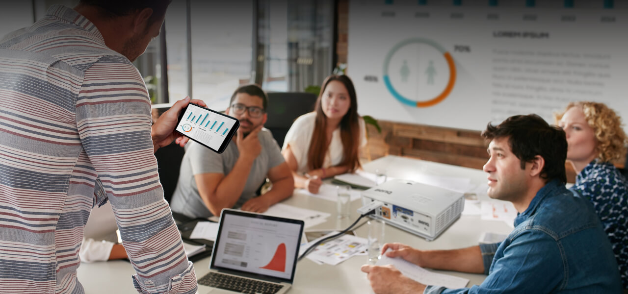 Ideal for lights-on presentations in bright meeting rooms, BenQ business projectors produce high brightness for effective teamwork, collaboration and note-taking. The high-lumen output ensures brilliant picture quality with vibrant colours as well as crisp text readability for documents. The projectors feature 1080p resolution, HDMI, USB and Lens Shift.