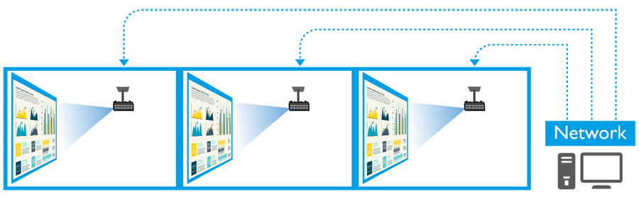 Widely compatible with leading projector control systems including Crestron, AMX, PJ-Link and Extron Control IP Link* for network control via LAN, BenQ business projectors seamlessly integrate into local networks. Select models also support RS-232 for reliable long-distance installations up to 15 metres away for situations without LAN.