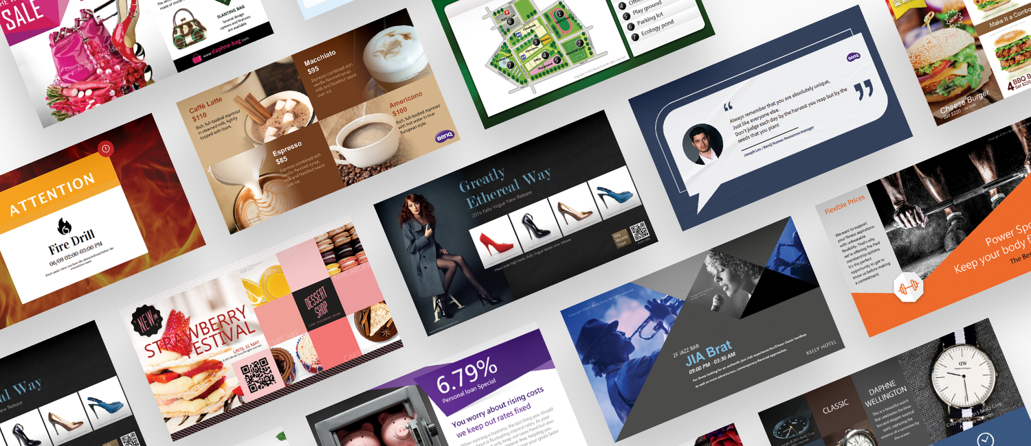 Choose from over 160 templates across several industries to create the perfect content for your signage.