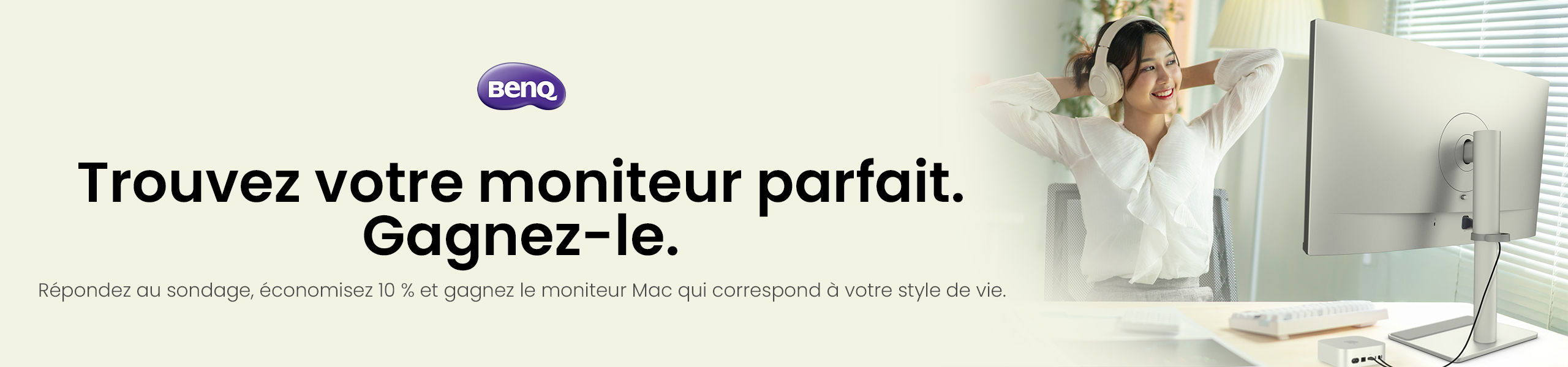 Répondez à notre court sondage, obtenez une réduction immédiate de 10 % sur les écrans séries MA et participez au tirage au sort pour gagner l'écran Mac parfaitement adapté à votre style de vie.