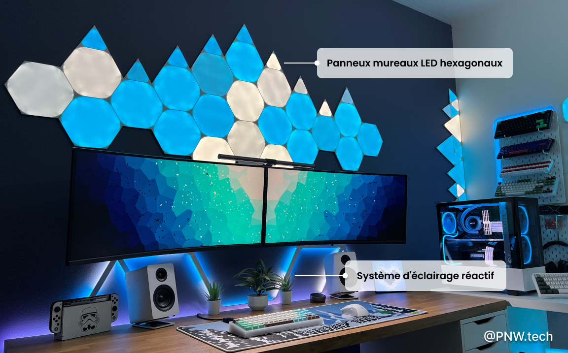 En d’autres termes, l’éclairage ne change pas uniquement l’apparence de votre setup : il influence ce que vous ressentez physiquement et mentalement quand vous jouez. Ce n’est donc pas juste une question de déco. Un bon éclairage vous aide à rester concentré, confortable, et totalement immergé.