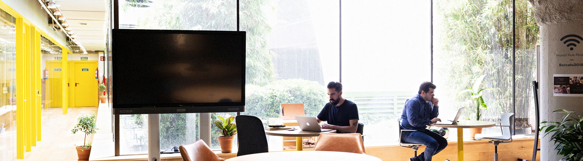 Un paio di spazi di coworking di Impact Hub a Madrid, in Spagna, volevano esporre immagini invitanti vicino agli ingressi. Volevano inoltre aggiornare i propri spazi dedicati alle conferenze con display di alta qualità e soluzioni per presentazioni wireless che permettessero agli utenti di eseguire contenuti video in streaming e applicazioni laptop su un grande schermo in tempo reale.