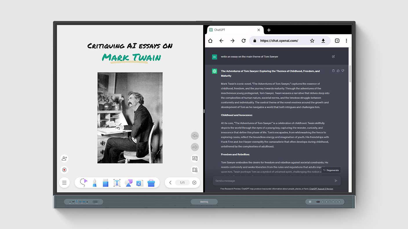 Il chatbot più famoso, ChatGPT, è disponibile come app per le lavagne BenQ su Google Play. Inoltre, è possibile scaricare con facilità da Google Play l'app Perplexity per accedere a Bard e Claude 2 dal browser della lavagna.