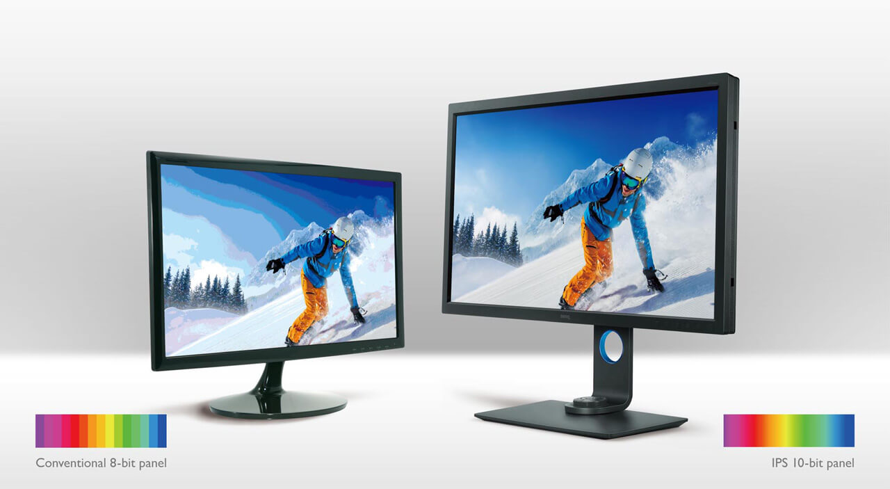 Hoogwaardige professionele monitors zijn meestal uitgerust met 10-bit IPS-panelen die meer dan 1 miljard kleuren kunnen genereren, zodat kleuren nog authentieker worden weergegeven.