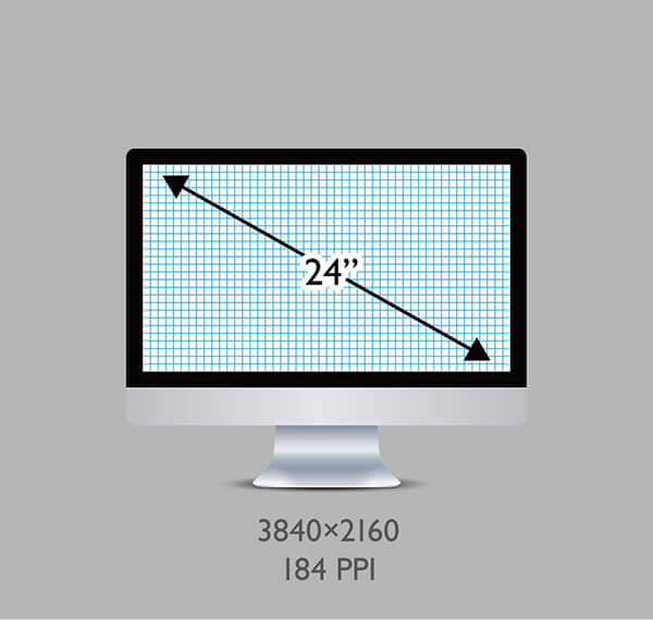De PPI van een 24-inch, 16:9 aspect ratio, 3840×2160 resolutie monitor is 184.