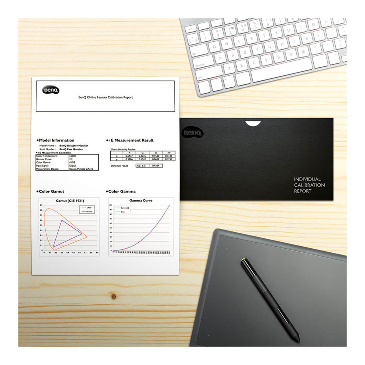 BenQ professionele monitors hebben een kleurkalibratie gehad voordat ze in de schappen zijn verschenen en worden geleverd met een kleurkalibratierapport.