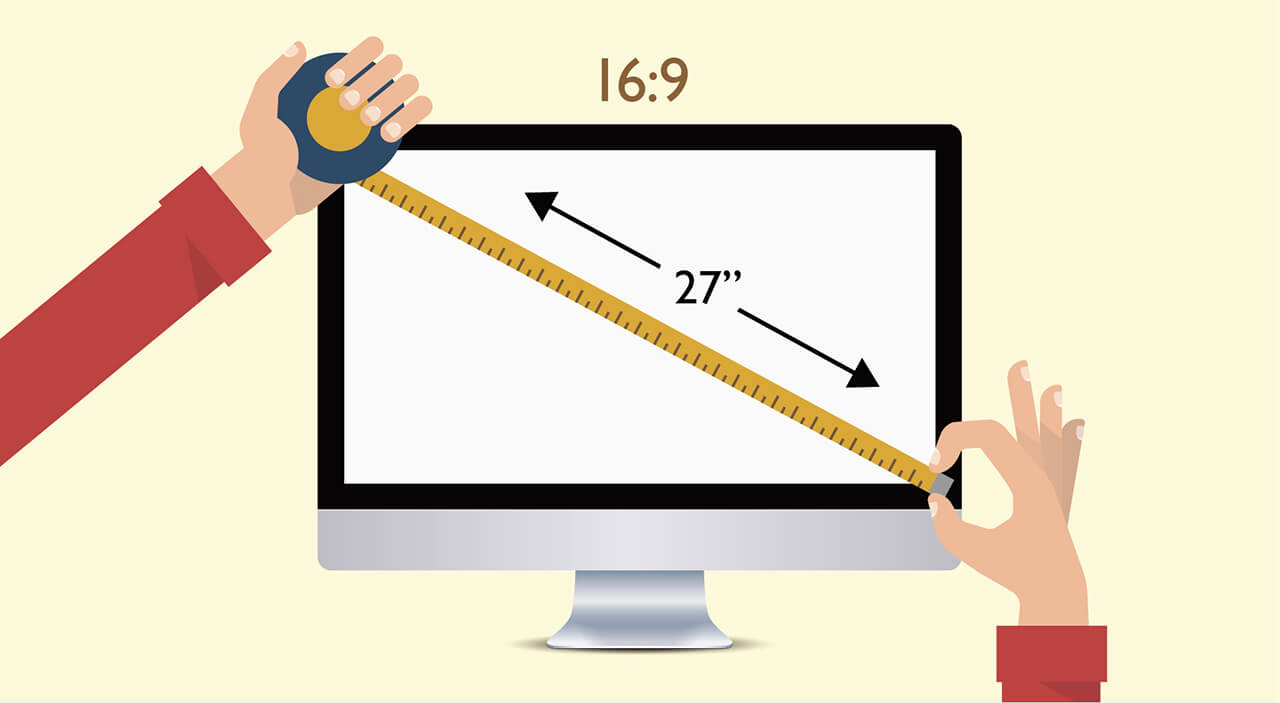Als u online een E-commerceplatform bekijkt, of een elektronicawinkel bezoekt, zult u direct opmerken dat monitors verschillende maten hebben. De cijfers 23-, 24-, 27-, 28- en 29-inch komen u tegemoet. Maar wat betekenen deze cijfers? Monitorformaat is een weergave van de afmetingen van een monitor, en dit wordt meestal gemeten in inches. Het formaat van een monitor is de diagonale lengte van het weergavegedeelte en kan worden omgezet van centimeter naar inches (1 in = 2,54 cm). Op dit moment zijn grote monitors met een breed formaat de trend in de markt (m.a.w. 27-inch monitors; 16:9). Naast het feit dat deze meer schermruimte bieden, kunnen grote monitors met een breed formaat meer detail weergeven. Dit is vooral belangrijk voor fotografen, die regelmatig afbeeldingen aanpassen. Daarnaast bieden deze monitors meer ruimte voor meer vensters en taakbalken als er gebruik wordt gemaakt van software zoals Photoshop, Lightroom, VEGAS en iMovie. Hierdoor kan dus efficiënter worden gewerkt.