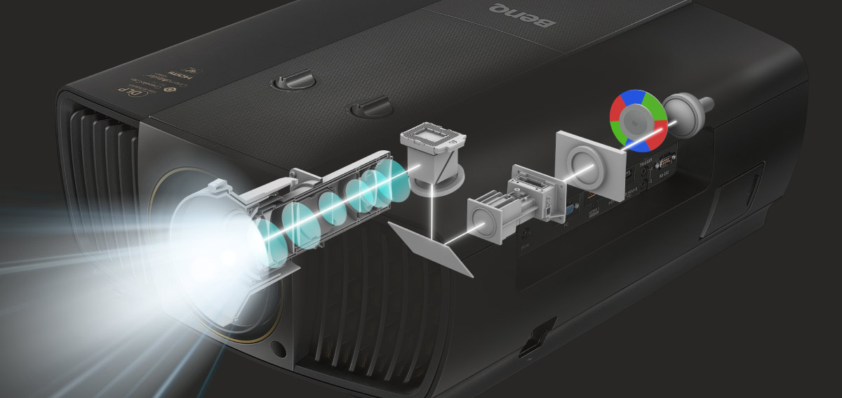 Van alle DLP-projectorcomponenten heeft de kleurencirkel het grootste effect op de kleur. Voor een perfecte balans tussen kleur-accuraatheid en helderheid is een hoge precisie en een strenge kwaliteitscontrole vereist. Omdat zelfs verschillen in nanometers grote verschillen in het kleurenspectrum veroorzaken, gebruikt BenQ CinematicColor™ nauwkeurige nanometer-niveaureferenties voor het testen van meer dan 20 combinaties van kleurencirkelhoeken en coating. Elke kleurencirkel is zorgvuldig gefabriceerd met high-pure-color coatings om te voldoen aan de vereisten van het Rec. 709 kleurenspectrum en voor het weergeven van de ware kleur van Hollywood-films.