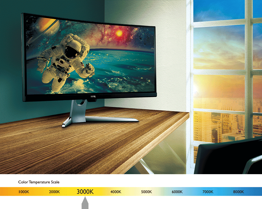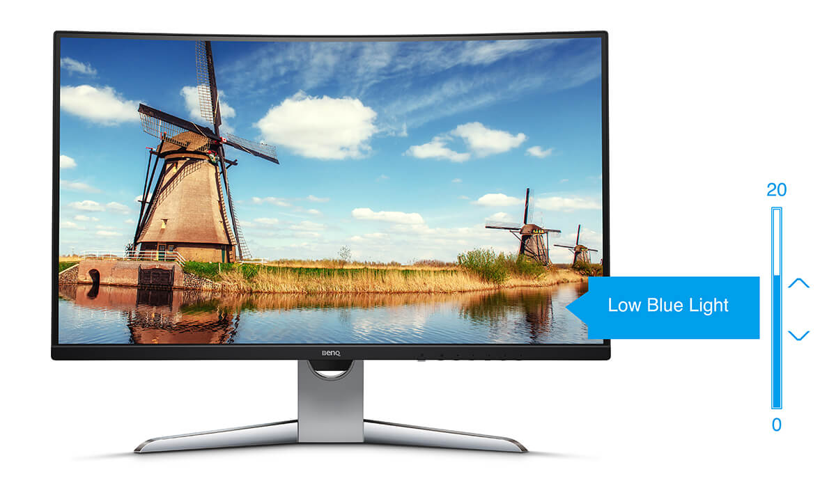 BenQ's Low Blue Light-technologie filtert schadelijk blauw licht en vermindert op die manier geïrriteerde en vermoeide ogen. Dat spaart de ogen, zonder dat het nodig is af te zien van de visueel indrukwekkende belevenissen die u niet wilt missen.