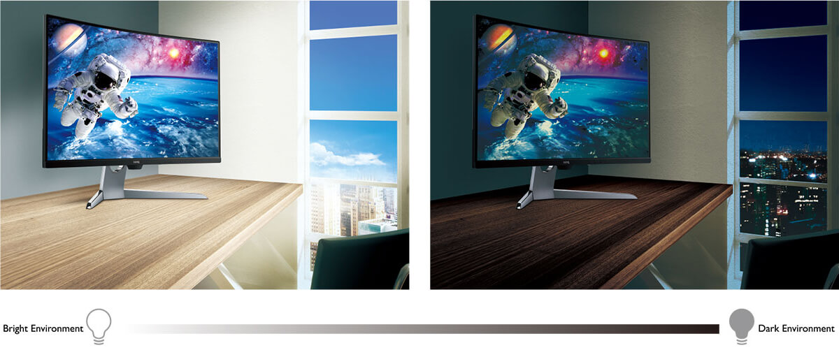De exclusieve Brightness Intelligence Plus-technologie van BenQ controleert en analyseert de inhoud van het beeldscherm voortdurend. De kleurbalans van het display is zo altijd optimaal. Heldere ensceneringen worden niet overbelicht, terwijl donkere delen van het beeld bijzonder duidelijk en met hoog contrast perfect worden weergegeven. Dat staat garant voor duidelijke weergave van de oorspronkelijke details. De combinatie van HDR en Brightness Intelligence Plus-technologie zorgt voor een glashelder, de ogen ontziend beeld met duidelijk gedefinieerde beeldsegmenten.