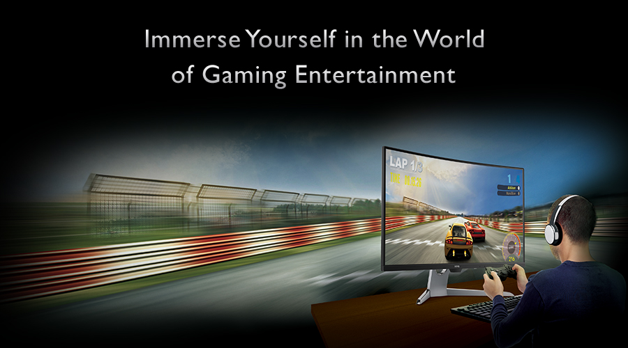 Het 32” grote display van de EX3203R houdt de aandacht vast en levert ronduit indrukwekkende beeldprestaties. De concave kromming van het 1800R-display* is ideaal voor een optimaal immersieve kijkervaring, vooral op het gebied van video-entertainment en gaming. *) Dat wil zeggen dat de radius 1800 mm zou bedragen bij cirkelvormige opstelling van meerdere EX3203R-displays.