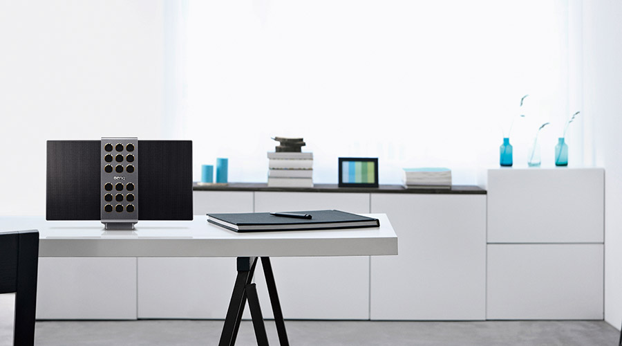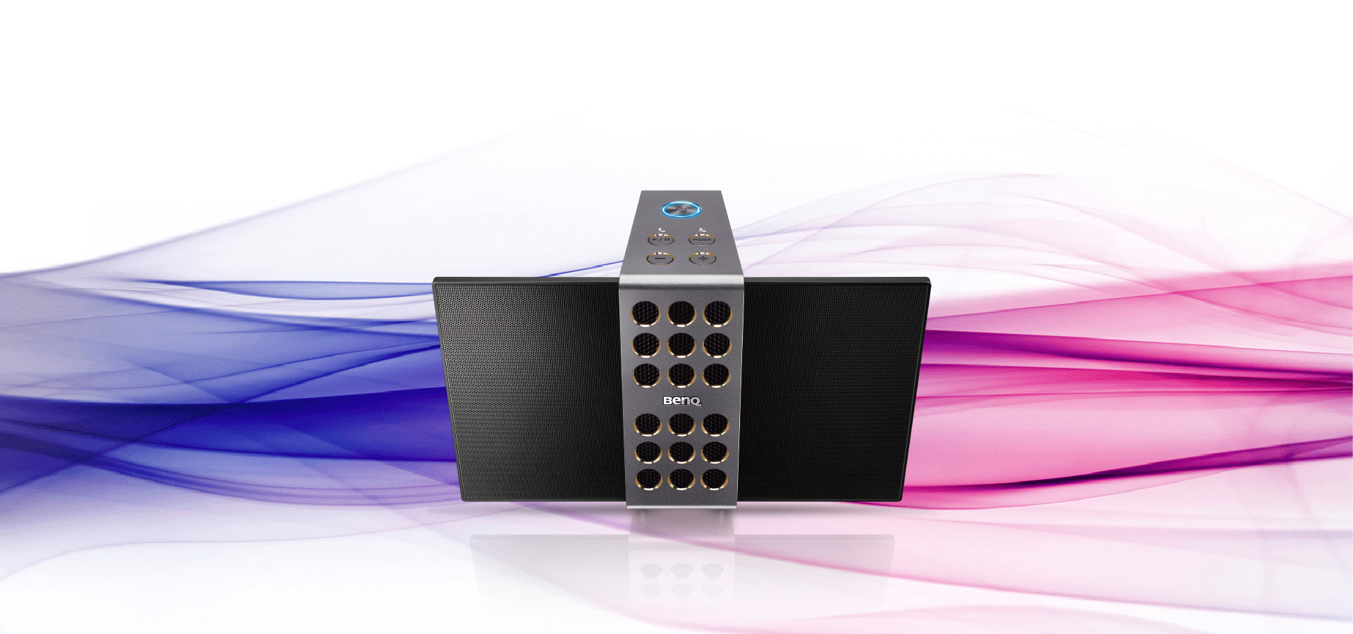 Laat uw muziek vliegen met BenQ treVolo S, 's werelds kleinste draagbare Bluetooth-speaker met prestigieuze elektrostatische speakertechnologie, die verbluffende zuiverheid en accuraatheid biedt voor uw favoriete vocale en akoestische muziek.