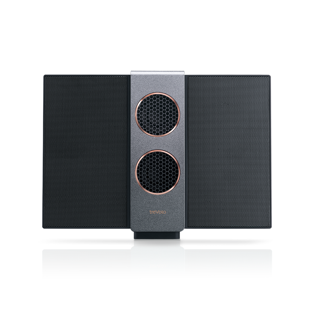 treVolo heeft een quad-versterkt ontwerp dat gebruikmaakt van twee BenQ-elektrostatische panelen met dubbele bas-drivers en passieve radiatoren, voor een vlakke frequentierespons tot 90 dB, die op getrouwe wijze een hoog niveau van gedetailleerde audio levert vanuit elke hoek zodat stemmen en harmonieën met precisie worden geleverd en kunnen worden gehoord zoals dat bedoeld is.