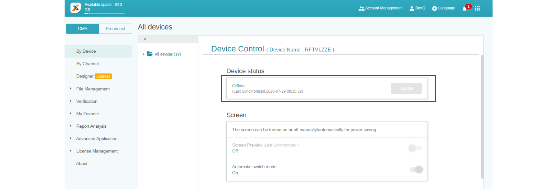 1. Active status of device: Go to By Device, the online/offline status will be shown automatically on the page.