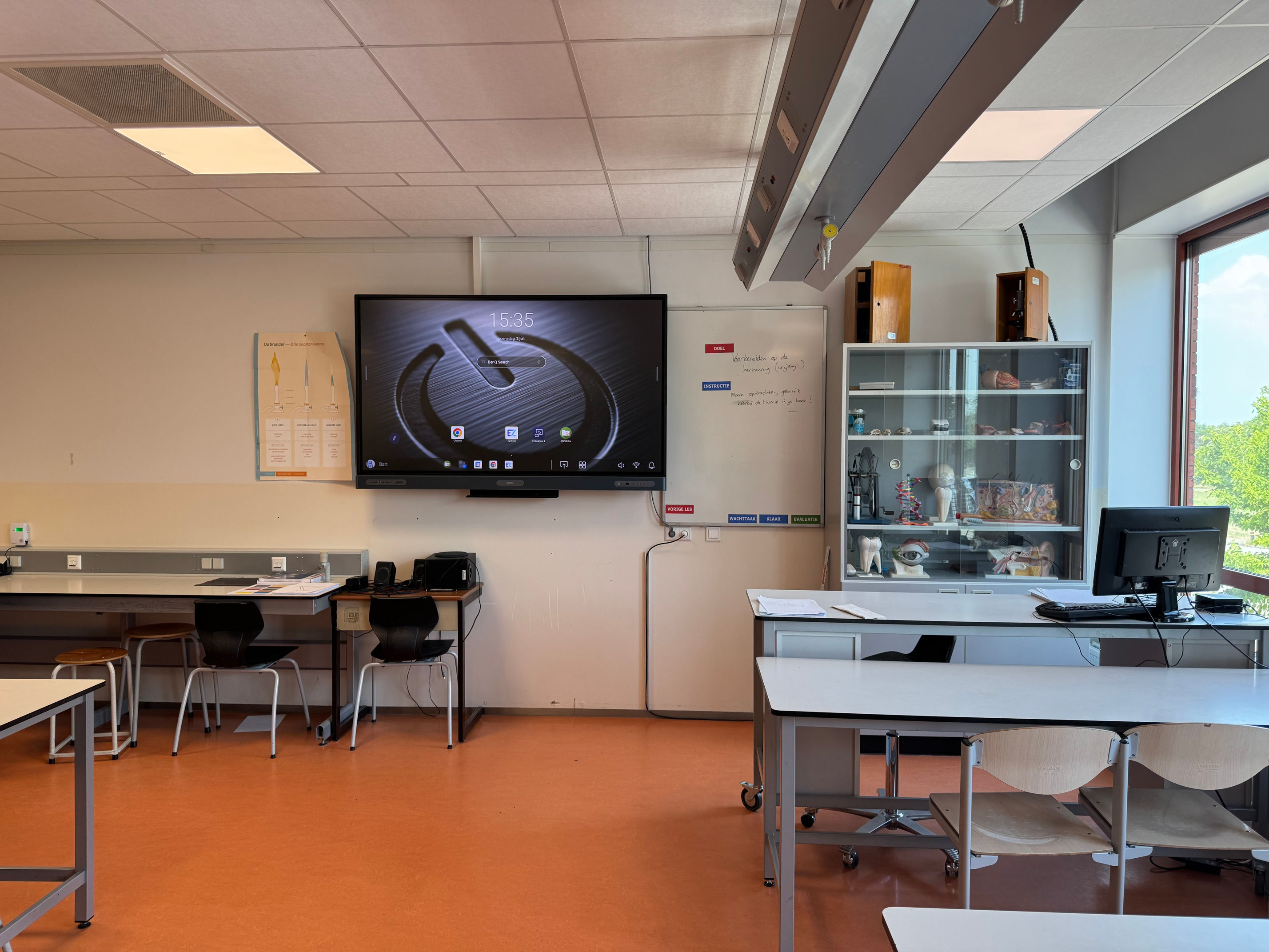 Na een verkenning op de onderwijsbeurs en het uitgebreid testen van verschillende schermen, viel in 2024 de keuze op BenQ-digiborden. Inmiddels zijn alle 37 lokalen op beide locaties ermee uitgerust – en sluiten de functies naadloos aan op wat de school écht nodig heeft.