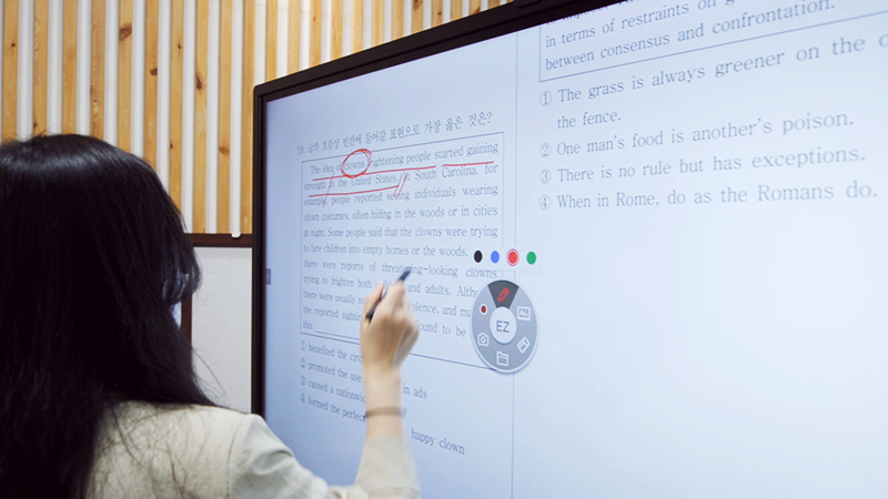 Seo Chung-hee, leraar aan de Jeong-yul Academy, zegt dat er een aanzienlijk verschil is sinds de BenQ Boards zijn geïmplementeerd. Ten eerste is het lesgeven gemakkelijker geworden. Seo wijst erop hoe de NFC-lezers op de RP02-borden hen direct toegang geven tot hun klasbestanden met slechts één tik op hun persoonlijke NFC-kaarten.