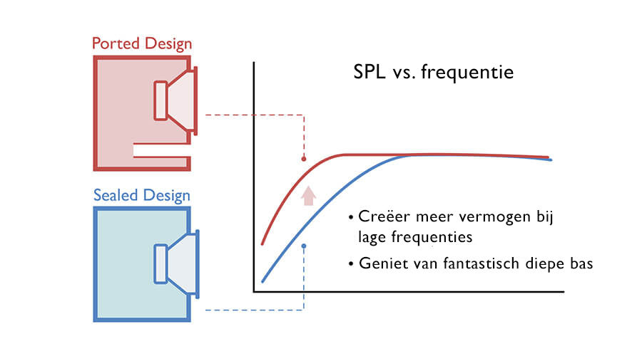 het ontwerp van de wooferpoort maakt een duidelijkere en hogere output voor lage eindfrequenties mogelijk