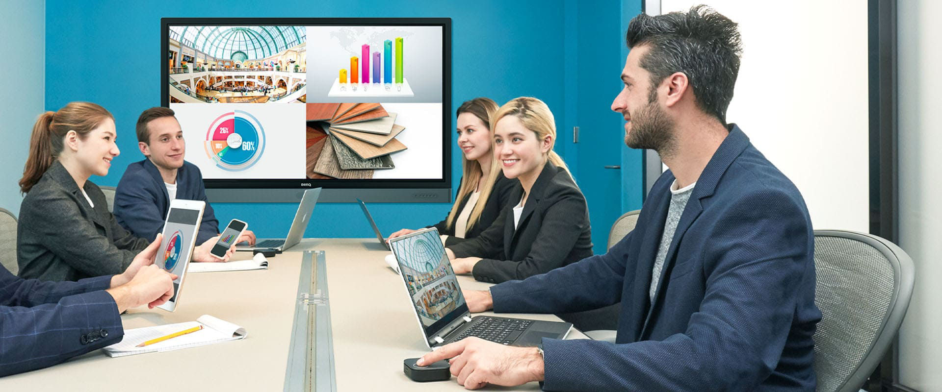 Het BenQ InstaShow® draadloze presentatiesysteem bevrijdt je van kabels en adapters, is intuïtief in het gebruik en zorgt draadloos voor vloeiende transmissies voor presentaties door meerdere personen en groepsdiscussies en is beveiligd tegen bedreigingen van buitenaf.
