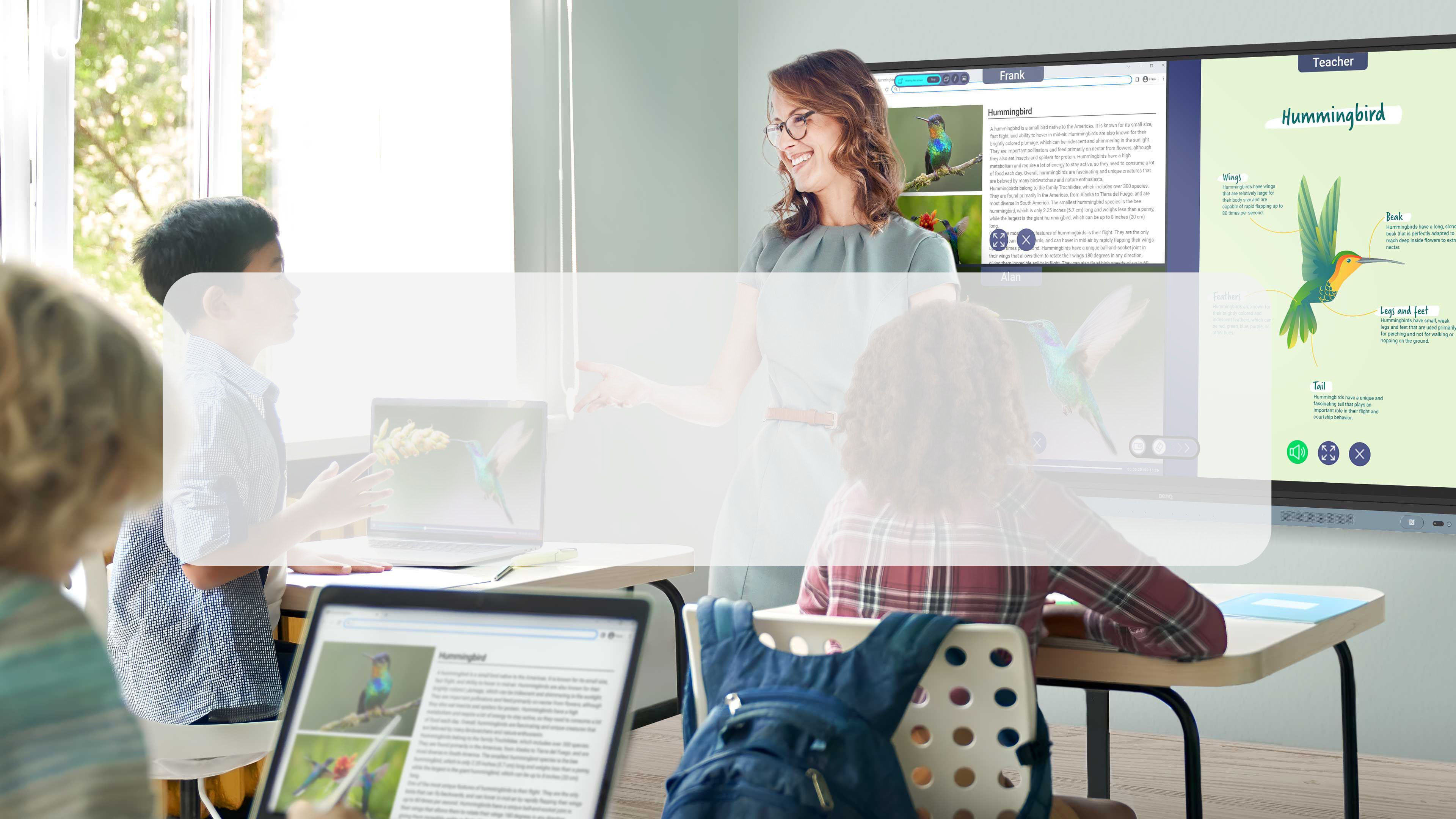 Seria BenQ RM04 umożliwia wielu uczniom intuicyjną interakcję z wyświetlaczem w tym samym czasie podczas pracy grupowej i innych zajęć w klasie.