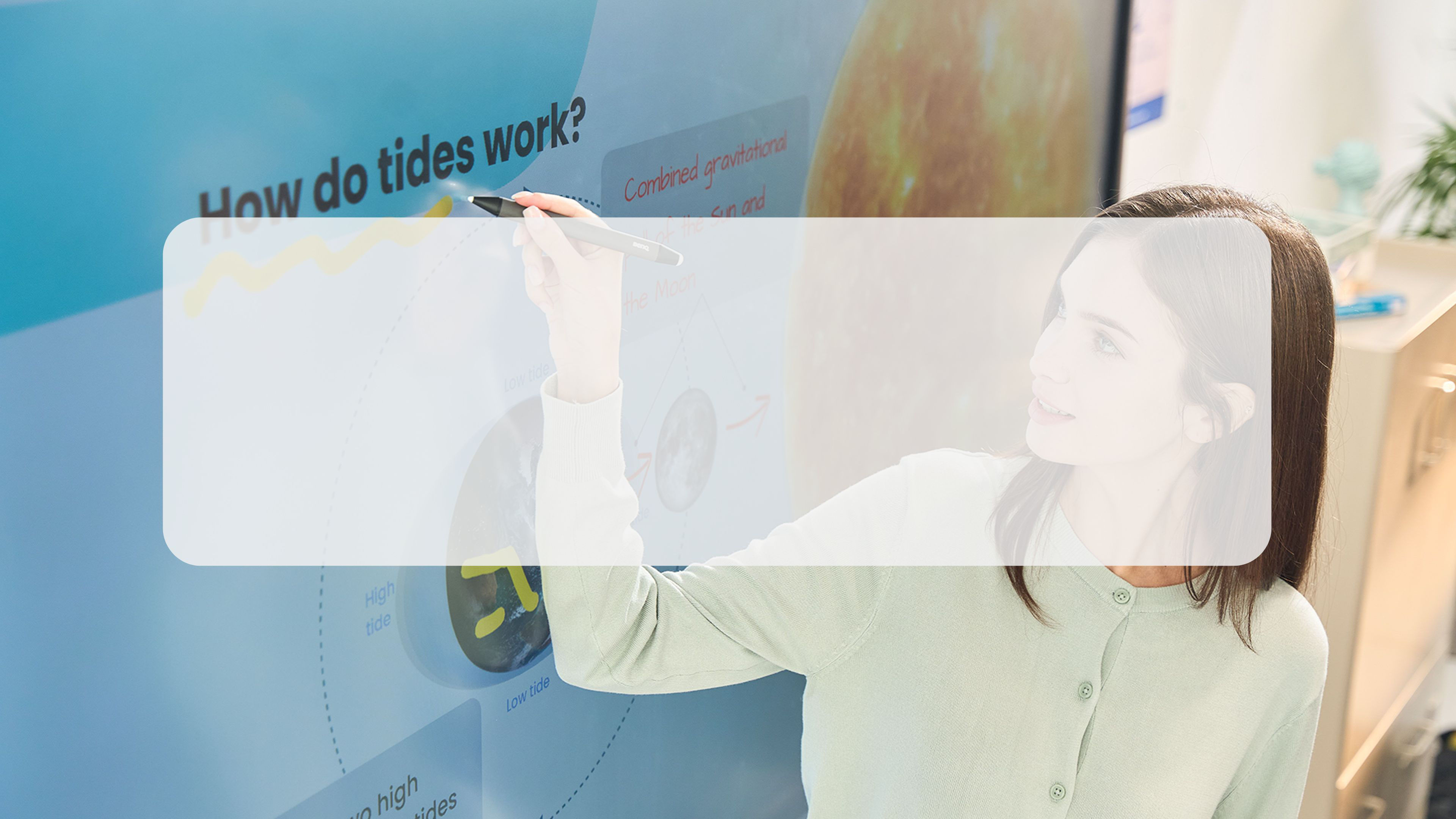 Wbudowane narzędzie Floating Tool umożliwia pisanie na dowolnej aplikacji, stronie internetowej, dokumencie, obrazie lub treści na tablicy lub z podłączonych urządzeń.