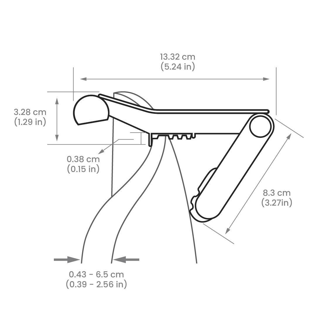 ScreenBar Pro może być używany na monitorach zakrzywionych, pod warunkiem, że grubość monitora mieści się w przedziale od 0,43 cm do 6,5 cm.