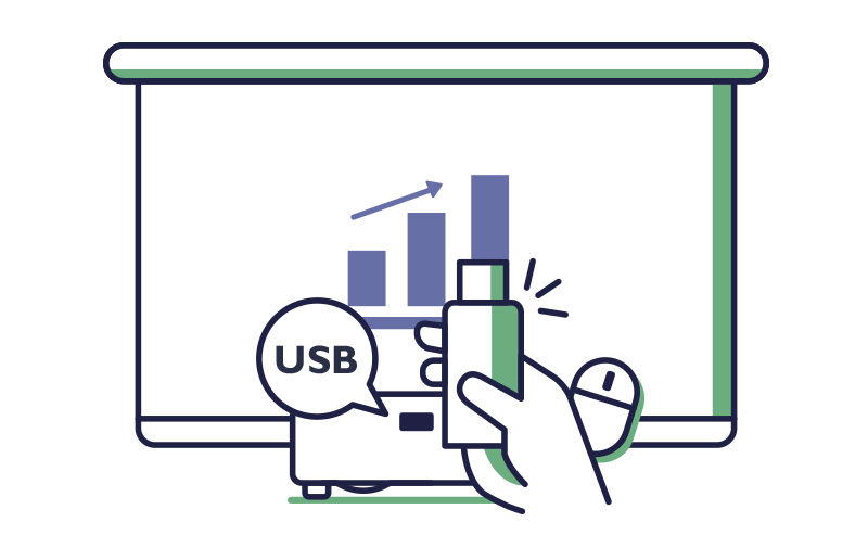 Enkelheten hos ett USB-minne ger mer självförtroende hos talaren. Du slipper fumla med en dator och leta efter en specifik fil eller länk.